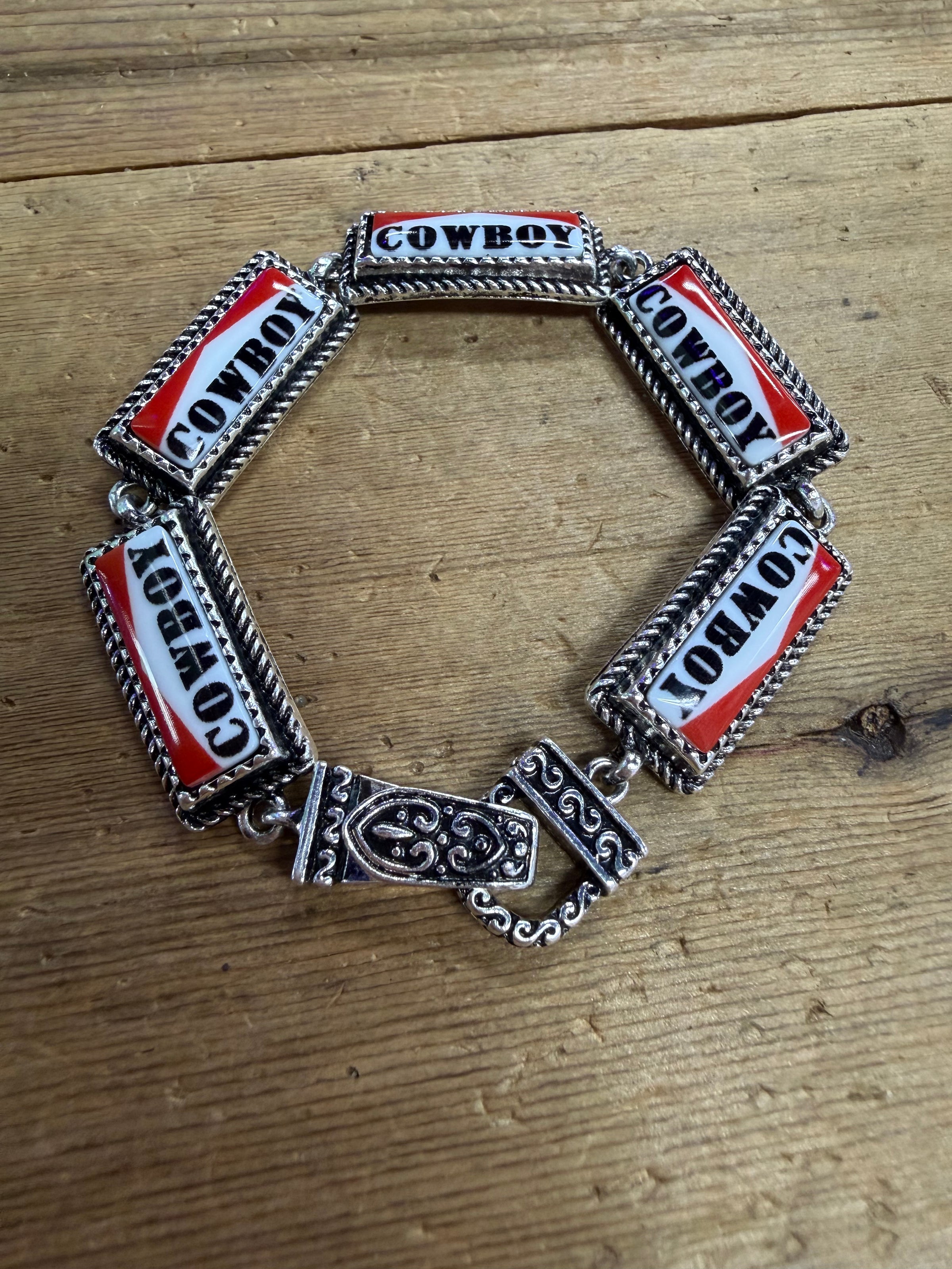 Wrangle your wrist with this charming cowboy bracelet featuring a secure magnetic clasp that keeps your style locked in place. Perfect for rodeo fans and western lovers who want effortless on-and-off convenience without the fuss. Whether you're hitting the trail or the town, this bracelet stays put while you live your wildest adventures. Yeehaw!