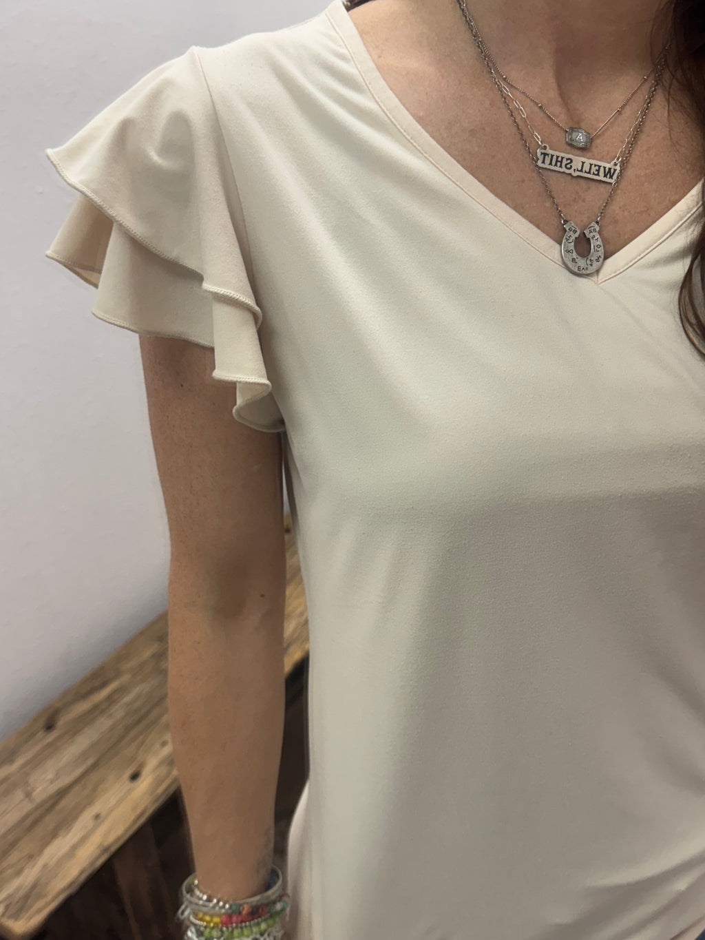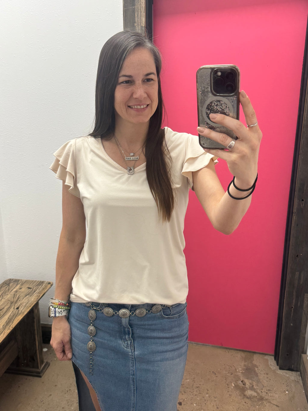 Basic Cream Ruffle Sleeve Top**2X ONLY**
