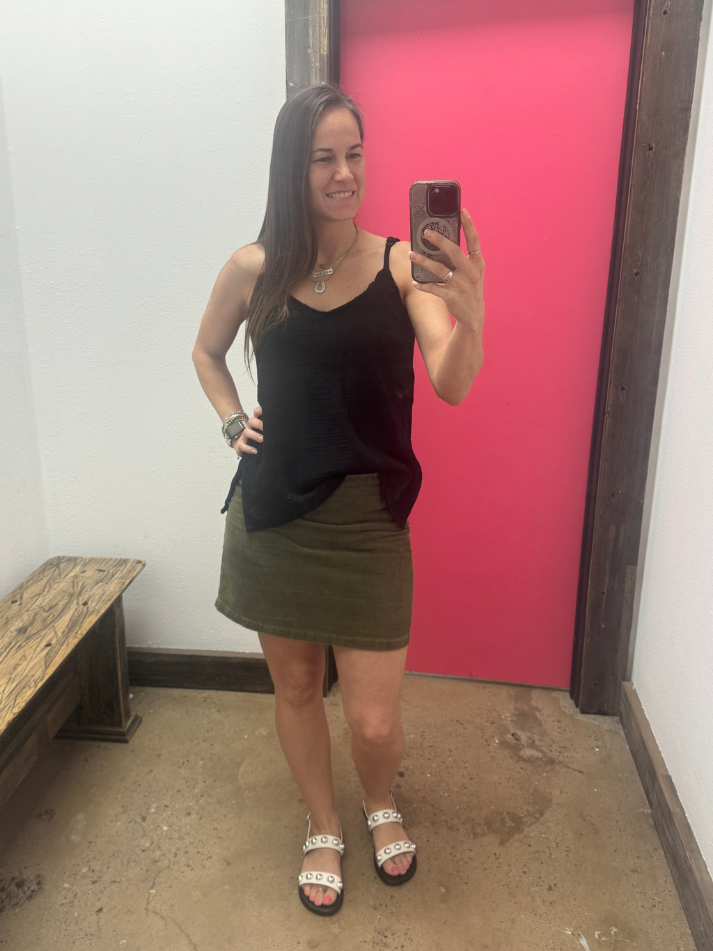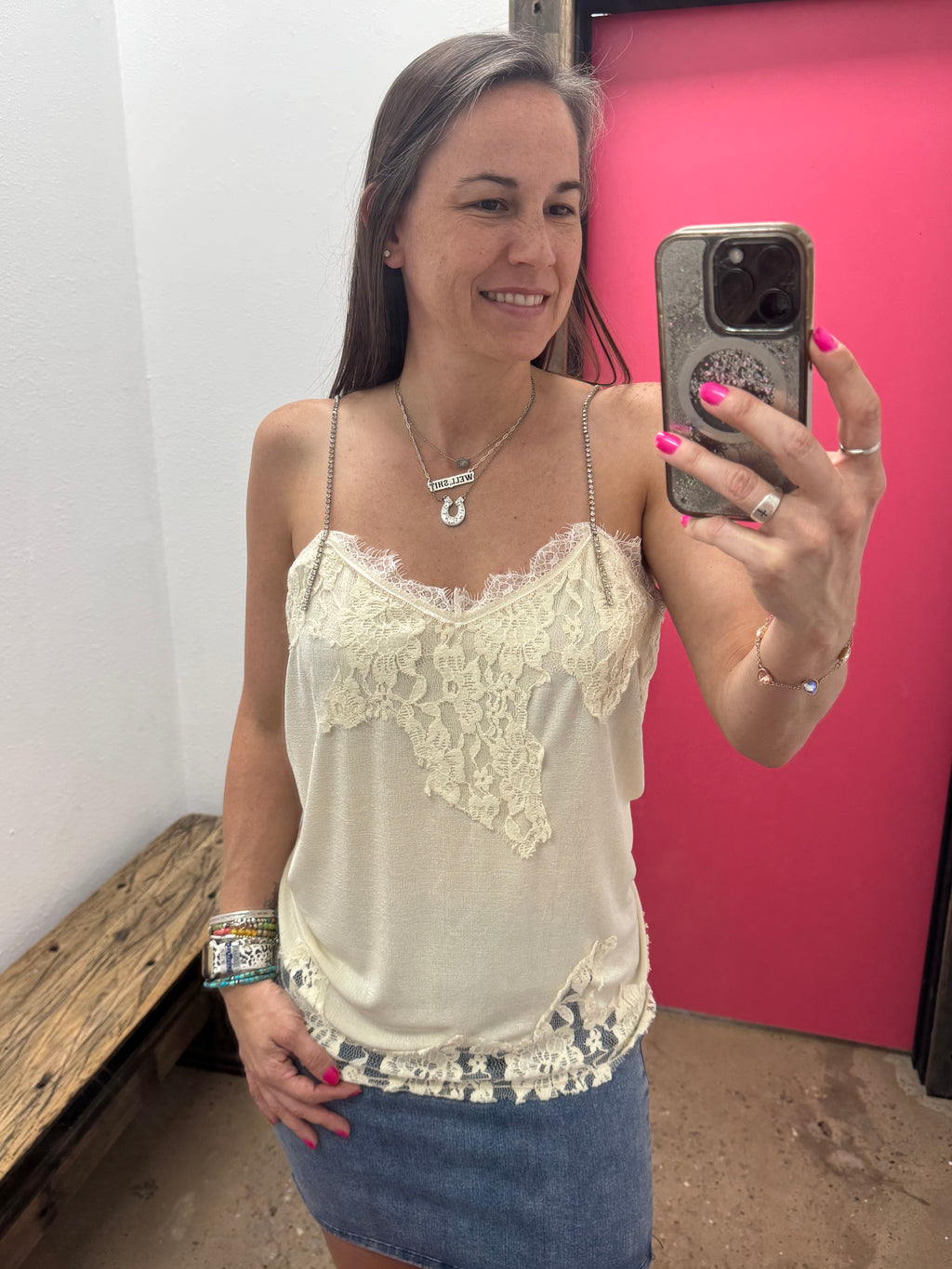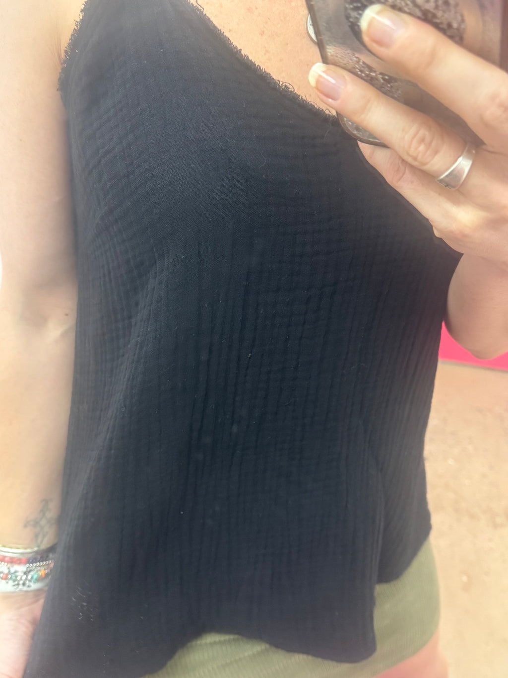 Fringe Spaghetti Strap Tank **Brown XL ONLY**