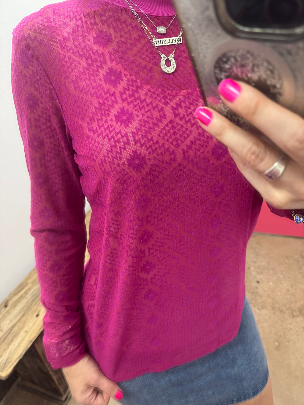 Aztec Sheer Top *XS & 3X PINK ONLY*