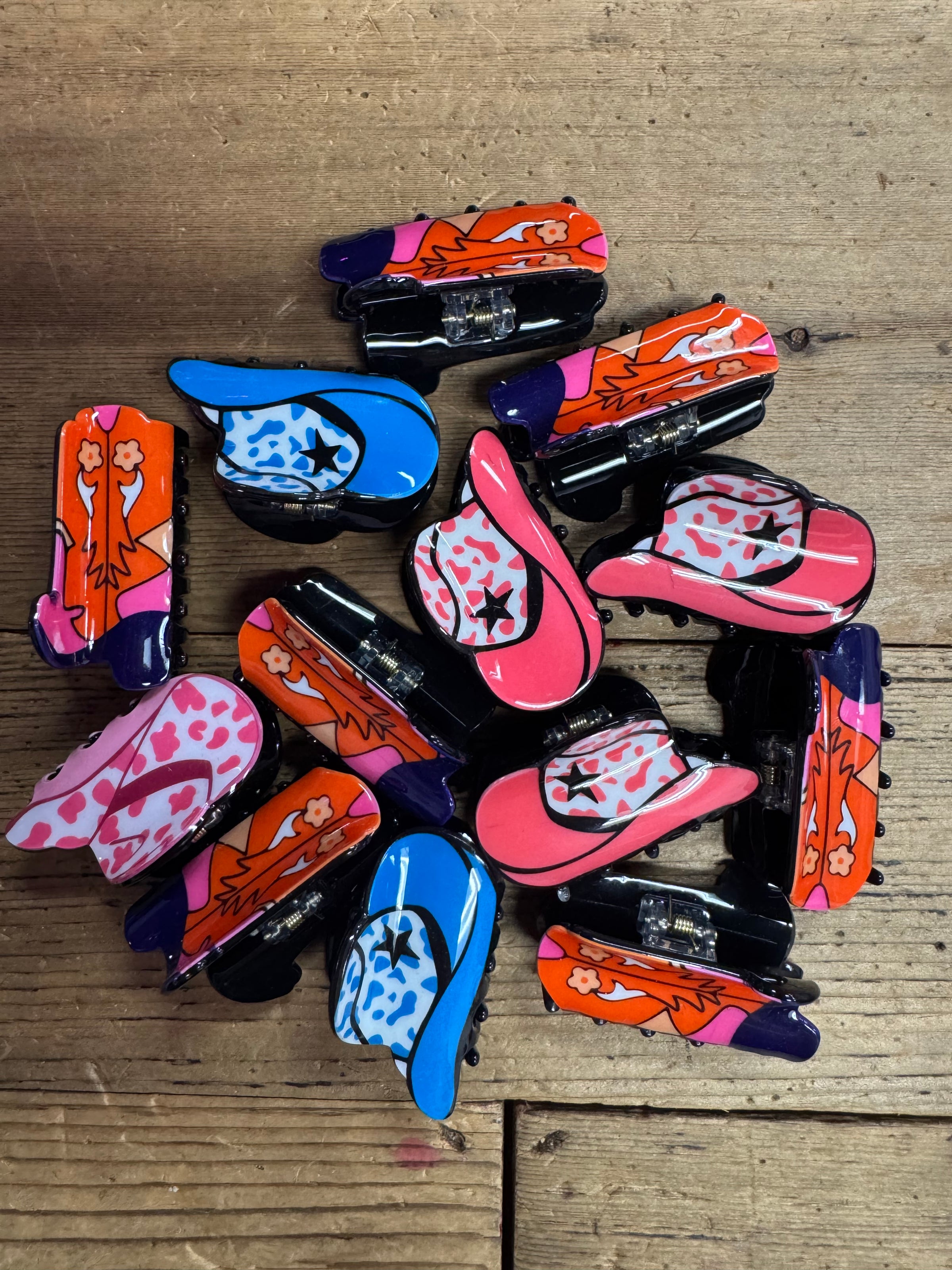 Elevate your style with these Small Western Claw Clips crafted from durable acrylic. Perfectly sized to hold your hair securely while adding a touch of western flair, they combine practicality with fashion. Whether for everyday wear or special occasions, these clips keep your look effortlessly polished and confident.