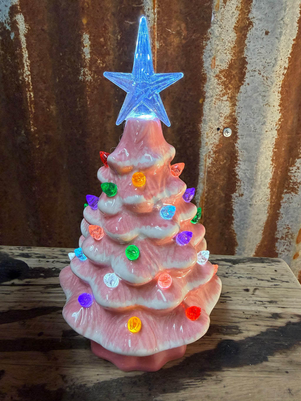 Pink & White Ceramic Tree (Lights up) Christmas Tree