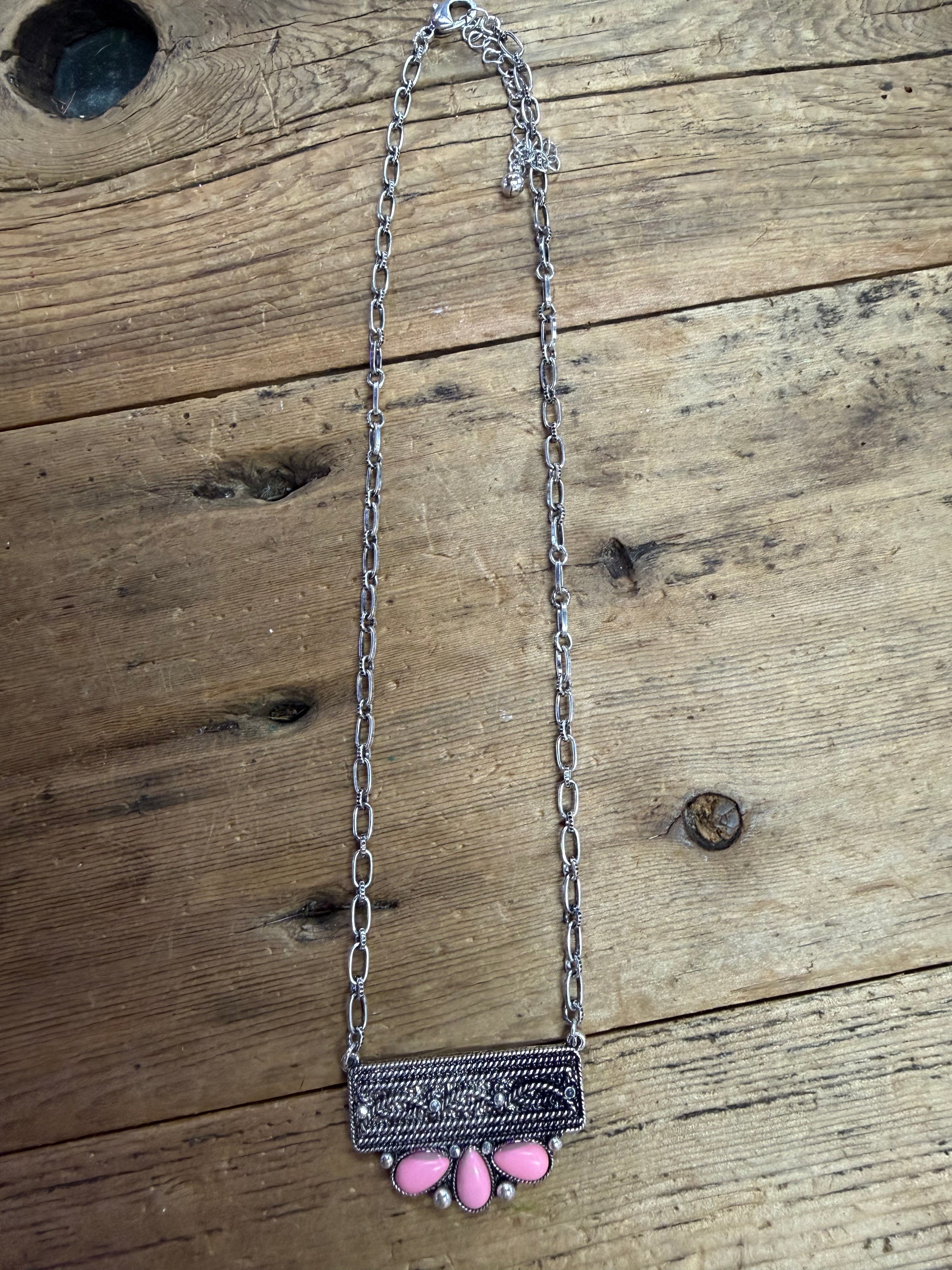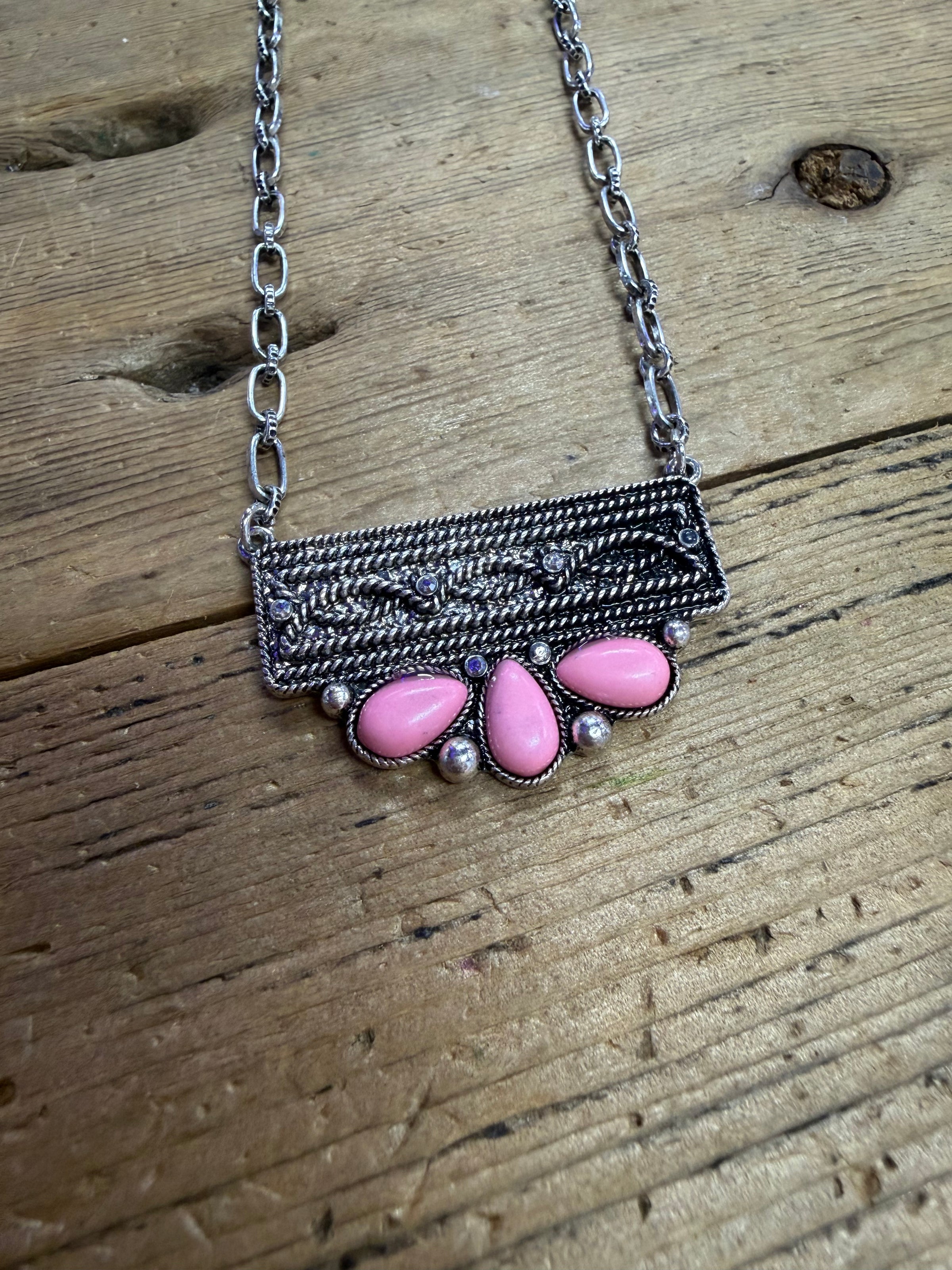 Elevate your everyday look with this stunning Boot Stitch Pink Stone Necklace—where Western charm meets modern sparkle. Featuring a gorgeous pink stone with intricate boot stitch detailing, this piece brings a touch of bold personality to any outfit. Perfect for rodeo season, music festivals, or whenever you want to channel your inner cowgirl. Layer it, wear it solo, or make it your signature accessory. Saddle up in style!