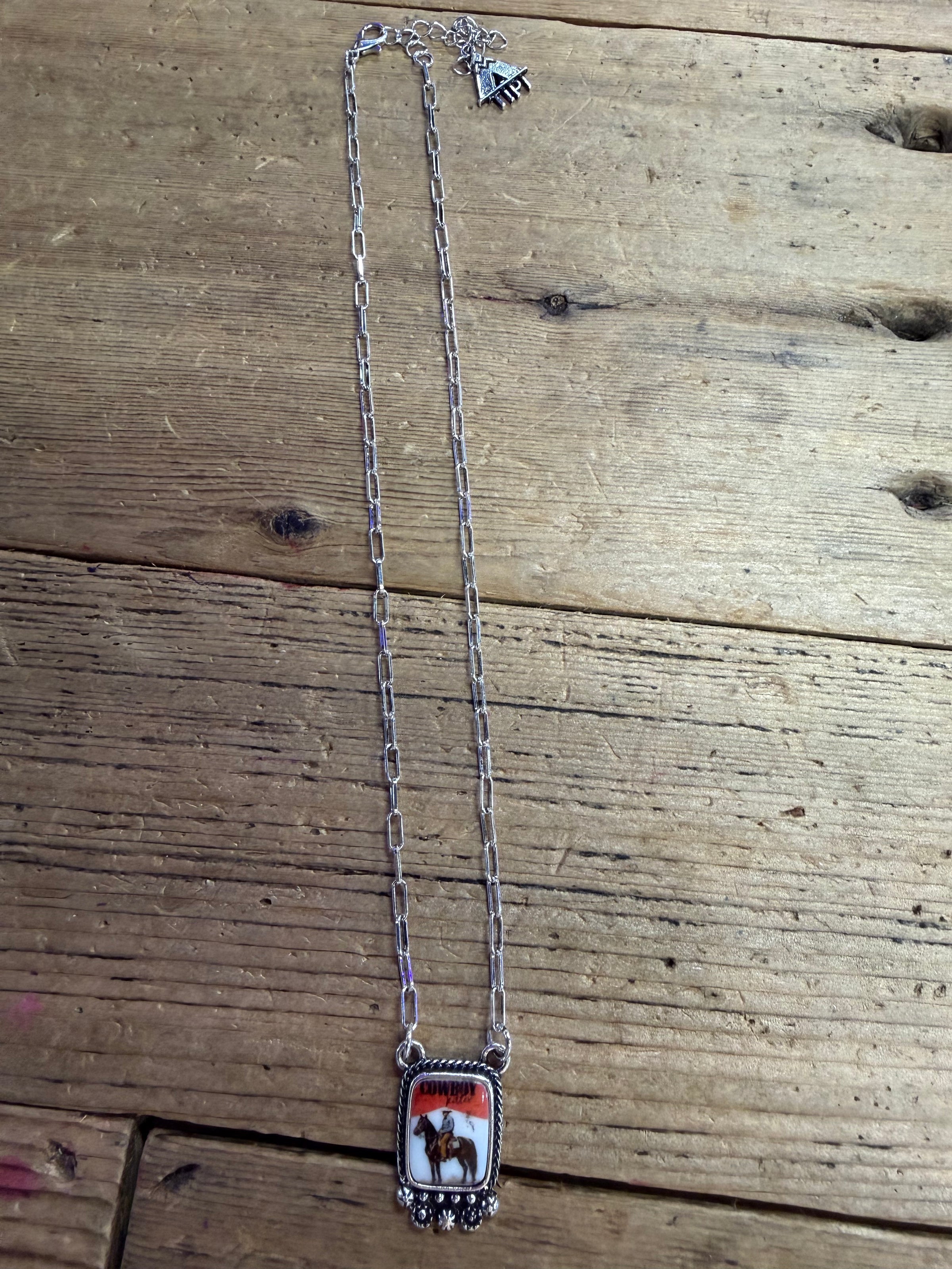 Saddle up for some serious style with this bold Cowboy Killer Necklace. Perfect for the free-spirited rider who doesn't shy away from making a statement, this piece channels that untamed Western spirit with attitude to spare. Whether you're hitting the rodeo or just bringing that cowboy edge to your everyday look, this necklace is your ticket to turning heads. Giddy up and let your wild side shine.