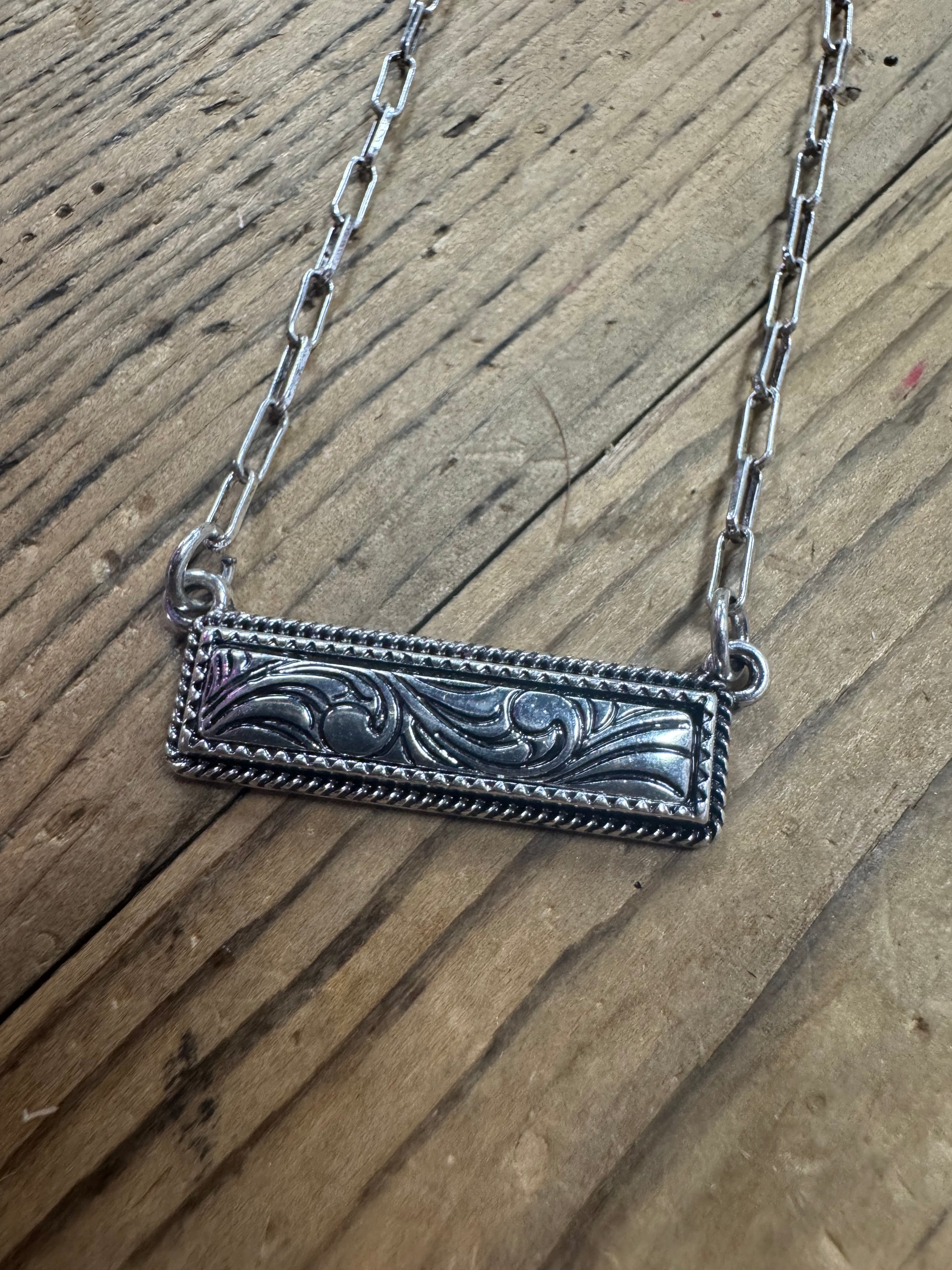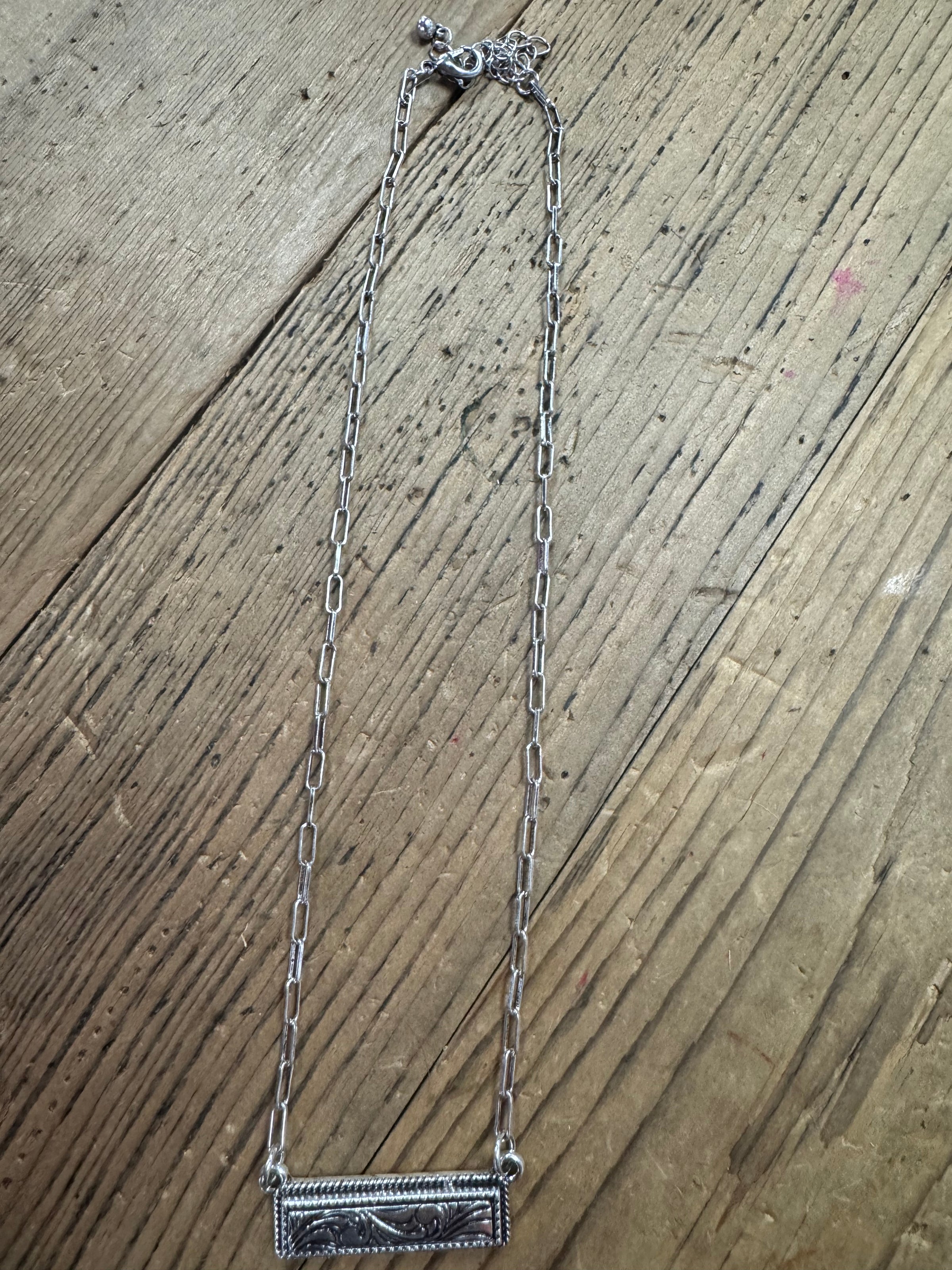 Add a dash of charm to any outfit with this Silver Tooled Bar Necklace. Easy to layer or wear solo, it's a little piece of fun you won't want to take off!17" 2" extender