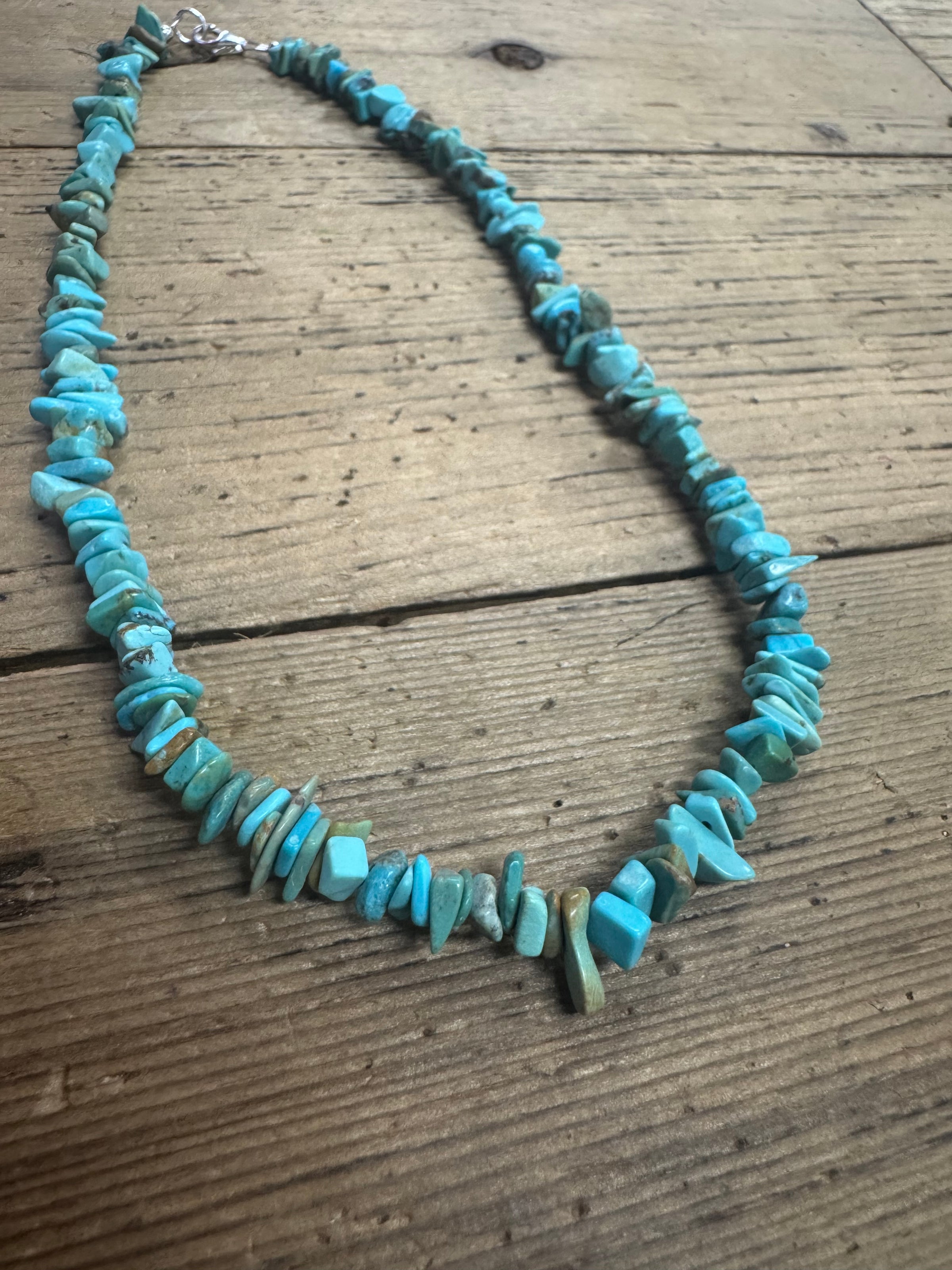 Add a splash of earthy charm to your look with this Turquoise Chip Necklace. Each natural stone chip is uniquely vibrant, making every necklace one-of-a-kind. Perfect for adding a playful pop of color to your outfit, it’s lightweight and comfy for all-day wear. Embrace a little wild spirit wherever you go with this fun, natural accessory!