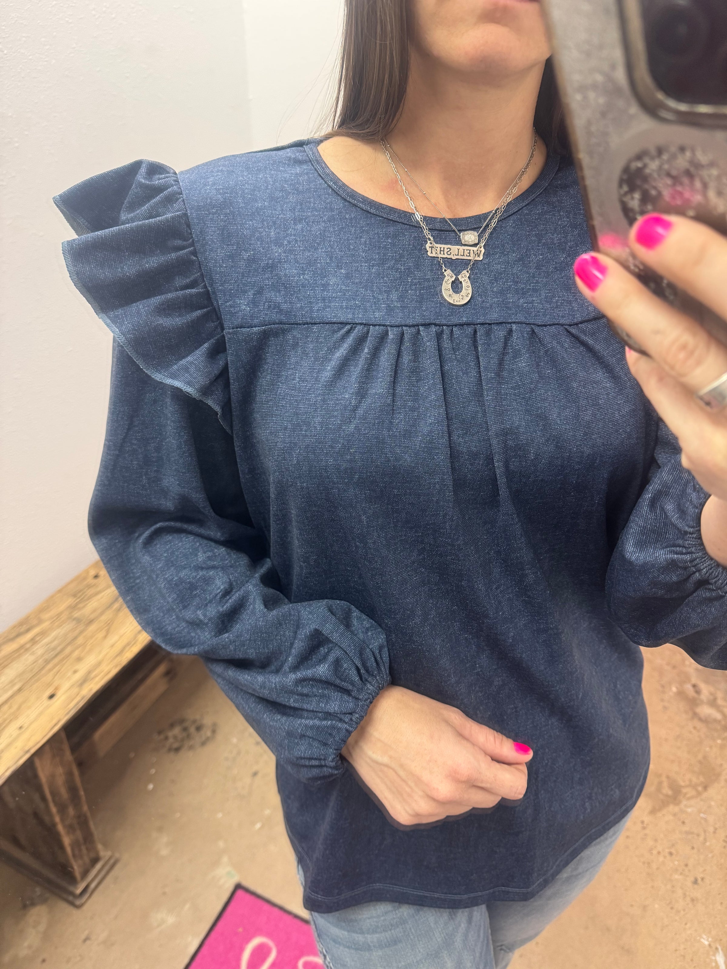 Denim Ruffle Longsleeve Top