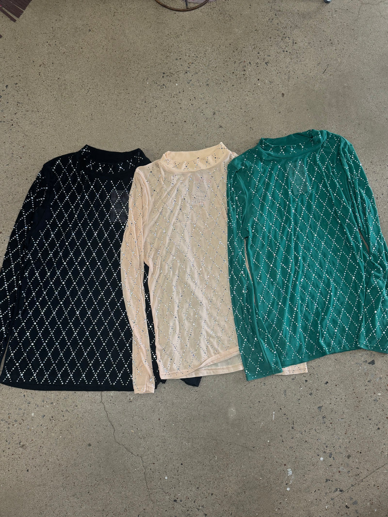 Introducing our Rhinestone Mesh Top - the perfect way to add some sparkle to your outfit! Made with high-quality mesh material, this top features dazzling rhinestones that catch the light and elevate any look. Upgrade your wardrobe with this eye-catching piece and shine like a star!