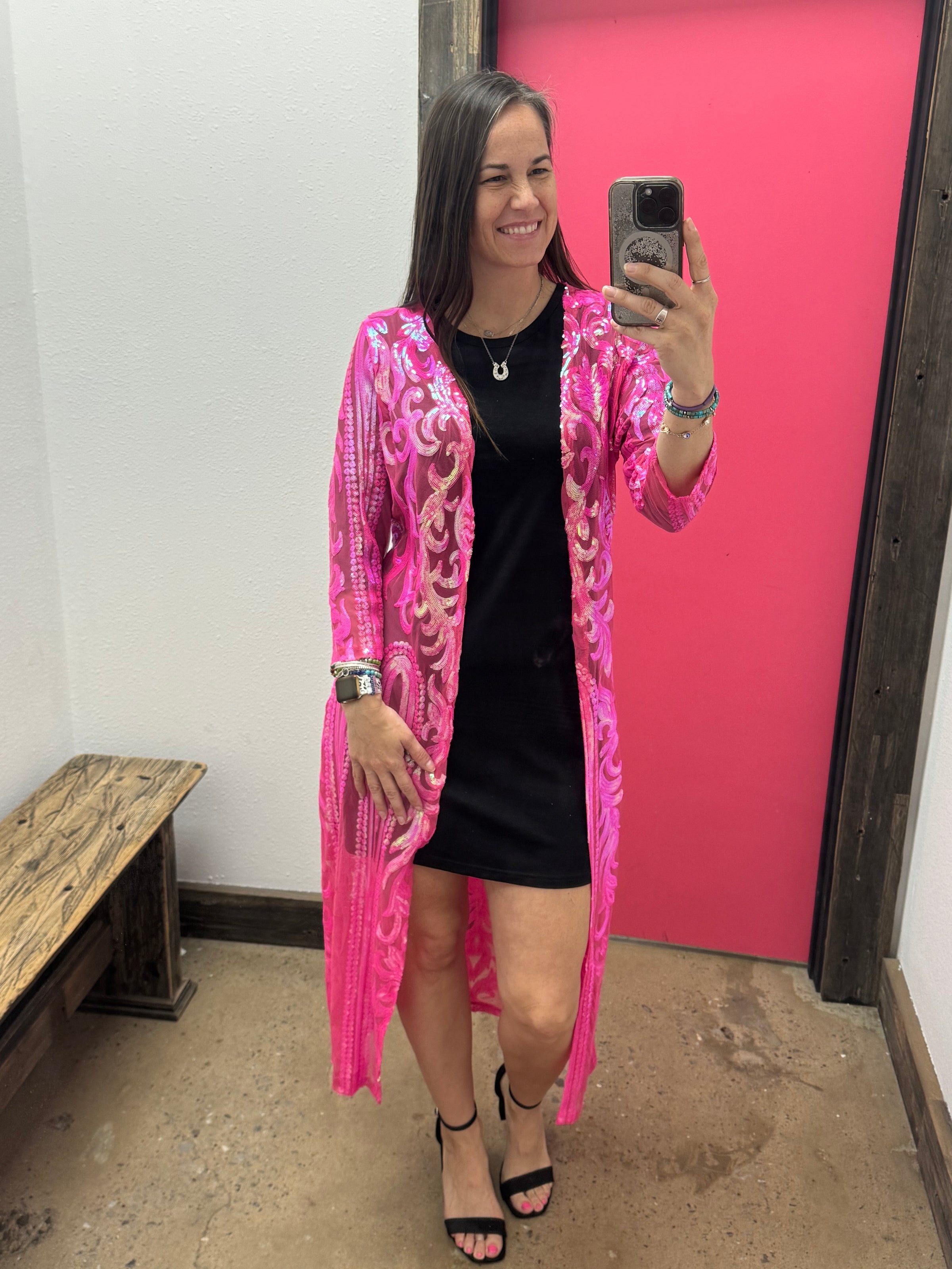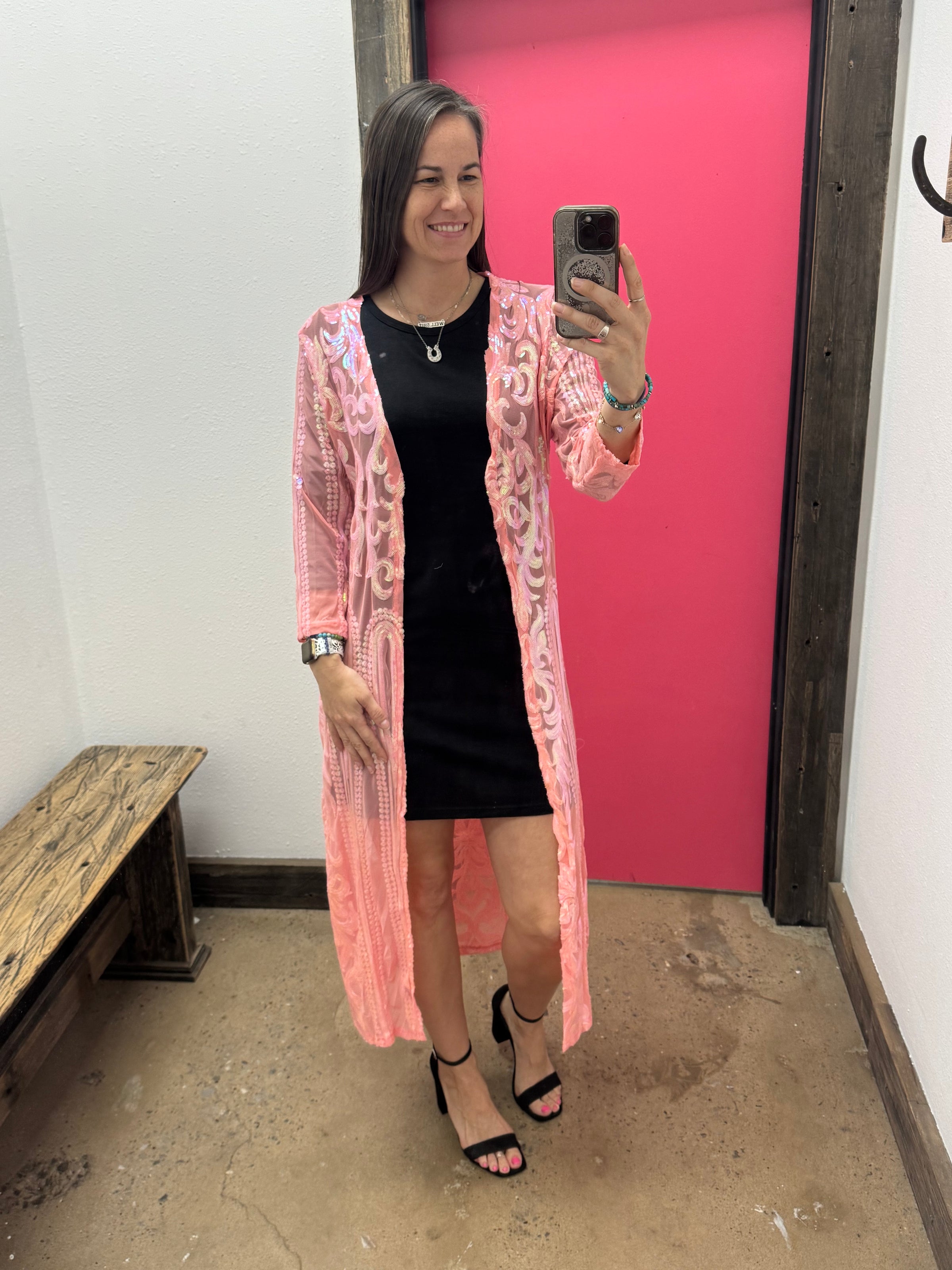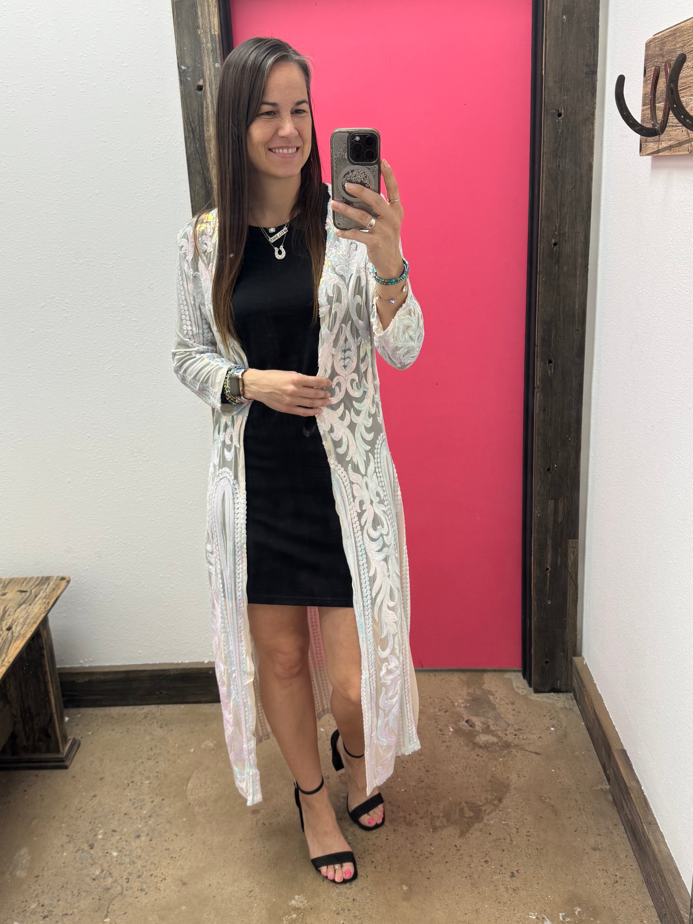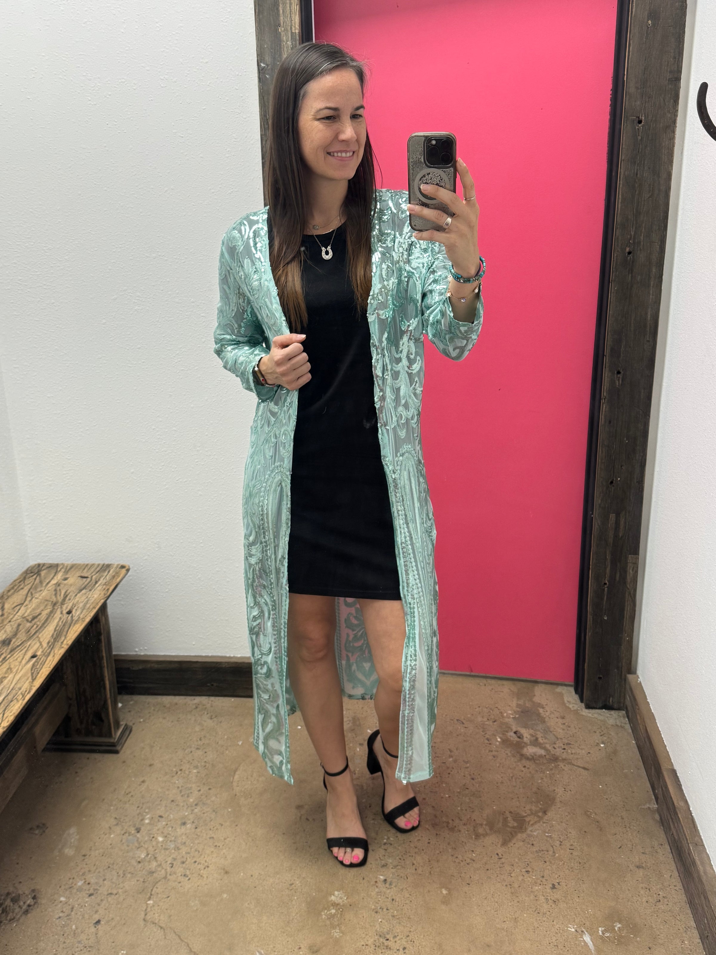 The Sequin Dusters add a touch of glitz and glamour to any outfit. These dusters are sure to make you shine and turn heads.