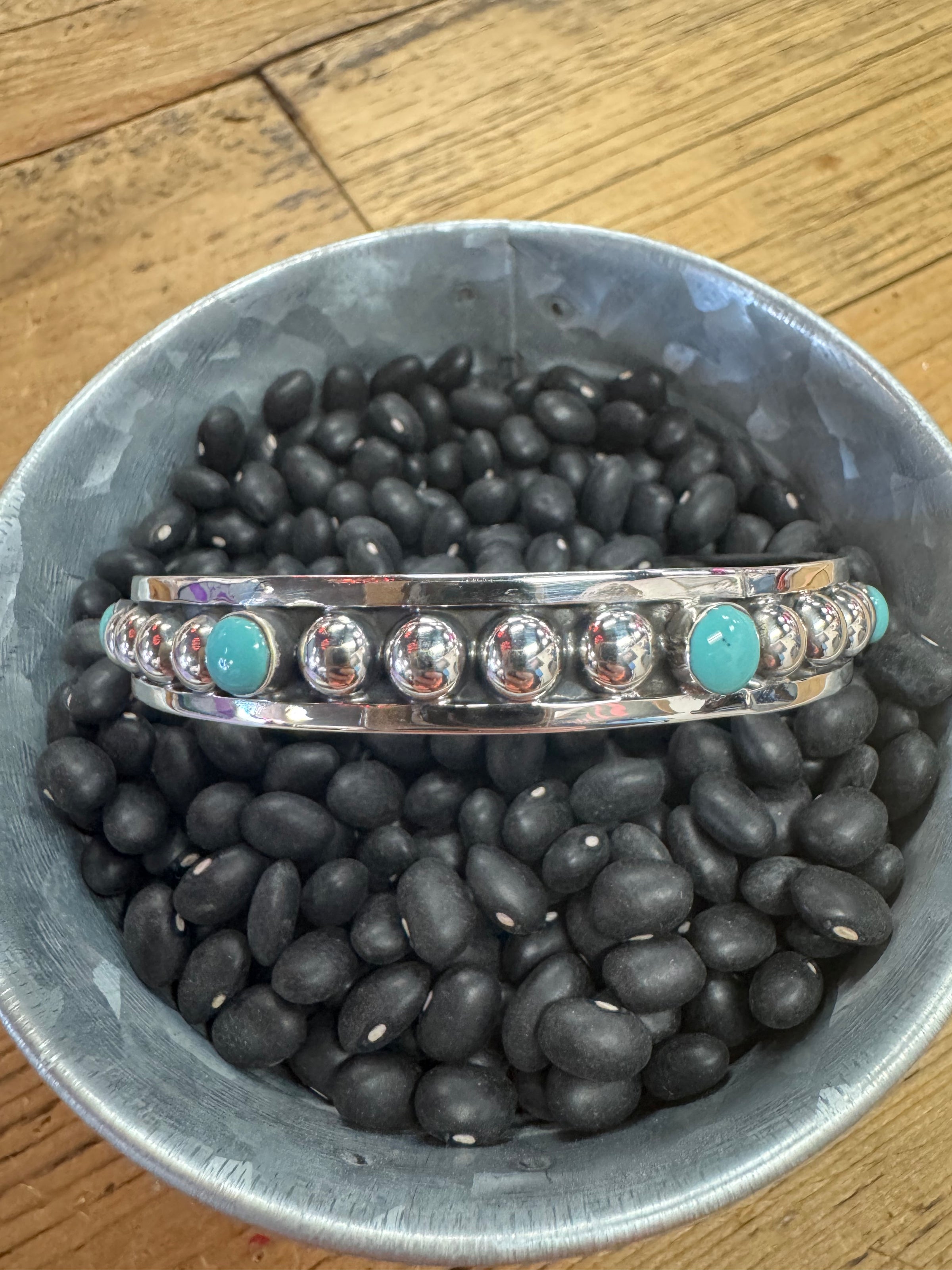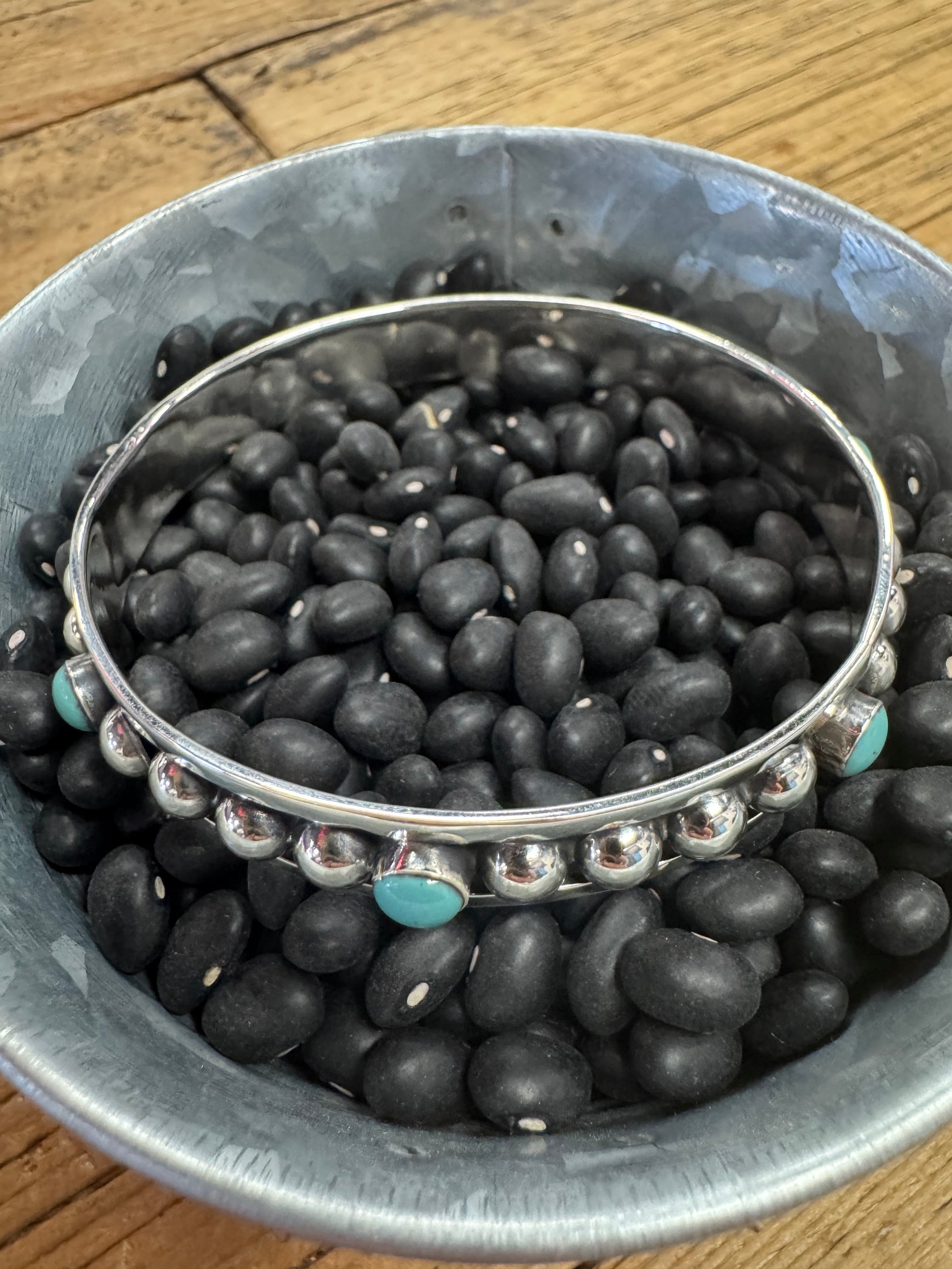 Sterling Silver Turquoise Ball Bangle Bracelet